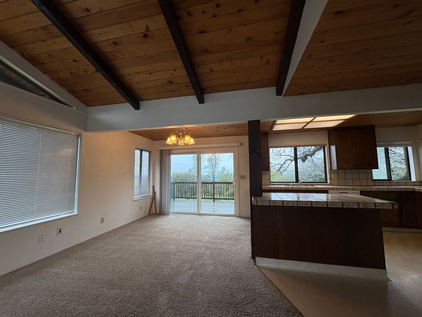 This single story 3 bedroom, 2 bath home is situated on 3 acres with 2 decks. There are unbelievable views, clear to Mt. Diablo and everything in between! The home features a cathedral wood beam ceiling in the living room, fireplace with blower and large kitchen with a center island. The spacious primary bedroom has 3 closets with built-in shelves and drawers. The home has great storage throughout. The house includes a two-car garage with remote, large laundry room and whole house fan. As a courtesy the following items are included, washer, dryer and window coverings. The property is on a private well. Tenant will need to contact Recology, PG&E, and the propane company to establish service in their name.