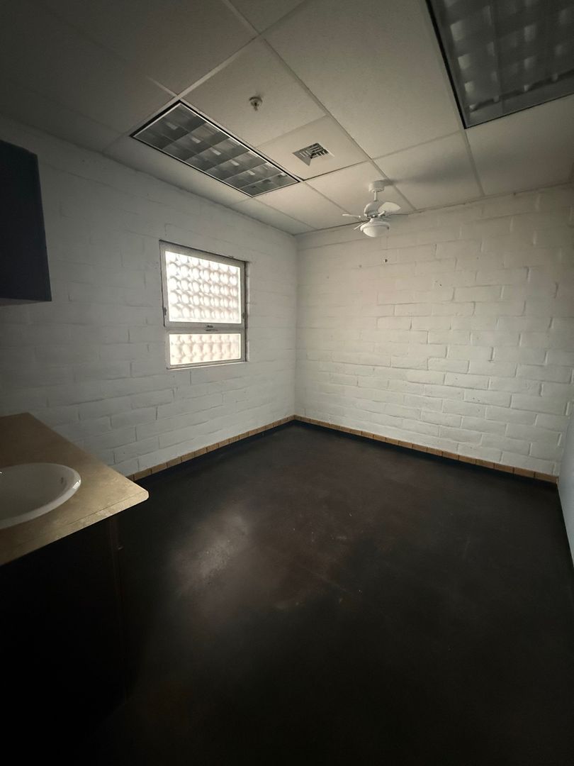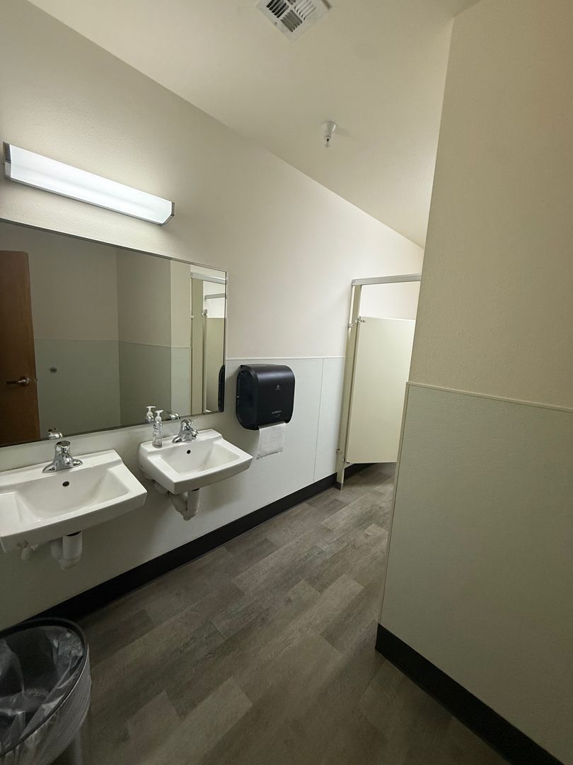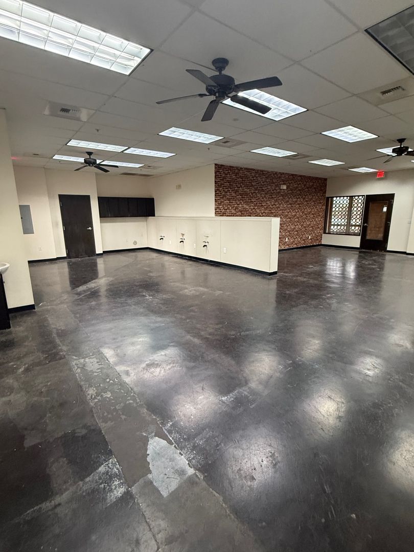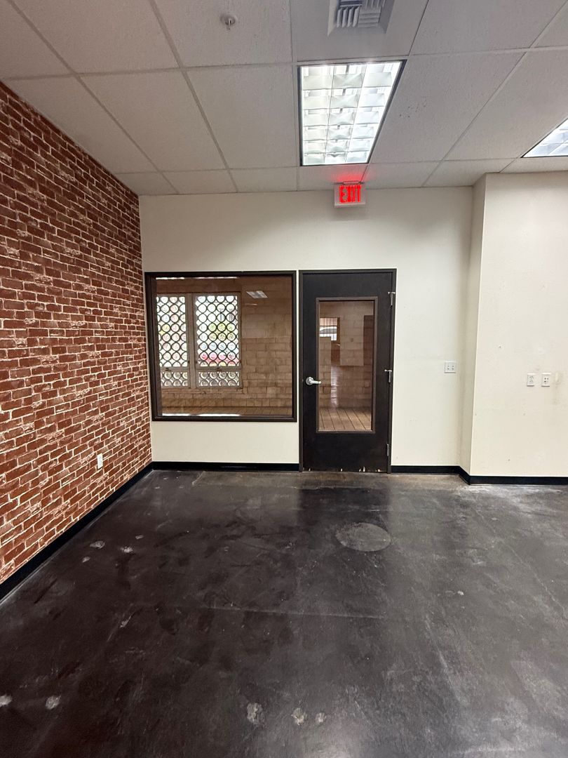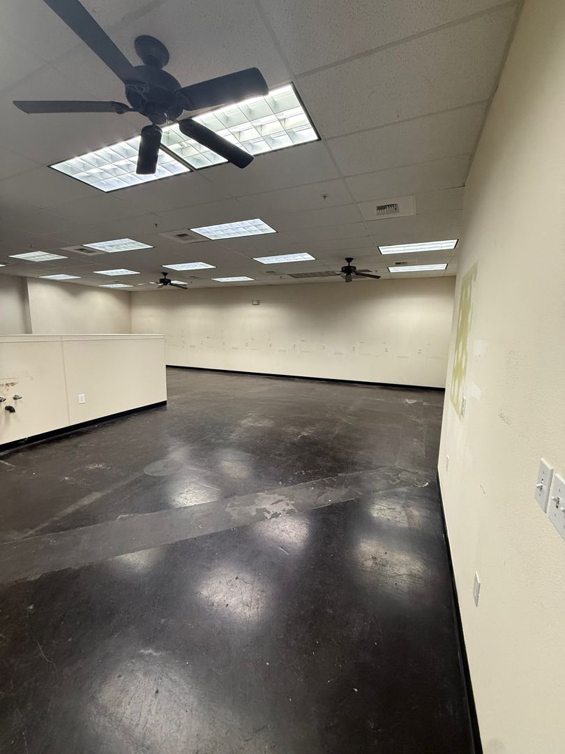 Spacious open suite with several utility sink hookups that are perfect for a spa or salon space! Concrete floors throughout with ample cabinet/counter space. Suite has access to shared kitchen/sitting area and private restrooms.